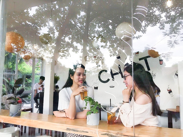 Chất là một cái tên khá quen thuộc với những ai thích chụp ảnh, thích những nơi yên tĩnh để học bài hay tận hưởng không khí trong lành. Khoác lên mình một bộ váy trắng tinh, đó là màu trắng của sự tinh khôi, thuần khiết, trong trẻo khiến ai đến đây cũng phải thốt lên vì quá xinh đẹp. Quán có vỏn vẹn một tầng, được trang trí tỉ mỉ tới từng chi tiết không một góc chết. Đặc biệt, bao trùm lên cả quán cà phê là tông màu trắng kết hợp với màu lục của lá cây, tường với nền đều cùng một tông màu tạo sự đồng đều, không rối mắt. Điểm nhấn là một vài chậu cây cảnh nhỏ xinh, nhấn nhá nhưng không kém phần nổi bật trong không gian trắng này. Bạn Hoài Nhi- một khách hàng thân quen của quán chia sẻ: “Mình hay đến Chất lắm, nhiều người đến đây vì sở thích chụp hình, còn mình đến đây để học bài và nhìn ngắm không gian ở đây. Chất yên tĩnh lắm, học bài rất hiệu quả, nhiều lúc mệt mỏi quá nghỉ ngơi một chút, rồi thưởng thức món trà cam vàng một chút là như tiếp được năng lượng."