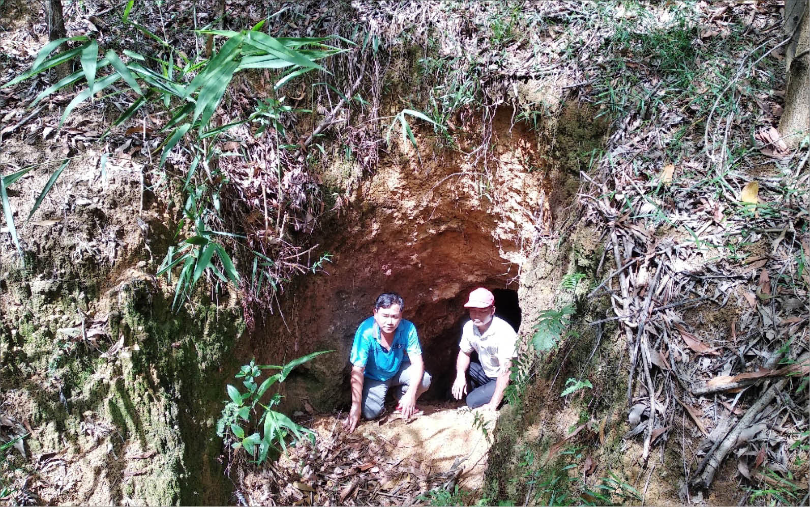 Cuối cùng, không quá khó để tìm kiếm, cửa số 1 ở hướng đông của địa đạo nằm ở gần một đỉnh đồi, cũng đã xuất hiện trước mắt chúng tôi. Có điều, không như chúng tôi tưởng tượng về một di tích lịch sử cách mạng đã được công nhận, khó có thể nhận ra địa đạo Xuân Lộc khiêm nhường và hoang sơ, nằm lẩn khuất giữa một rừng keo bạt ngàn. Cửa phía đông là một trong 2 cửa của địa đạo nằm ở địa phận bản Phúc Lộc, xã Xuân Lộc (Phú Lộc). Địa đạo còn một cửa nữa ở phía tây, thông ra nguồn Tả Trạch.