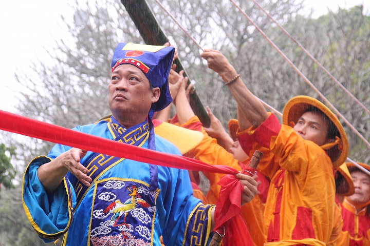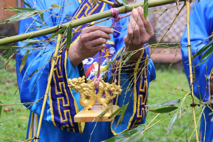 Tái hiện nghi thức dựng nêu ngày Tết.
