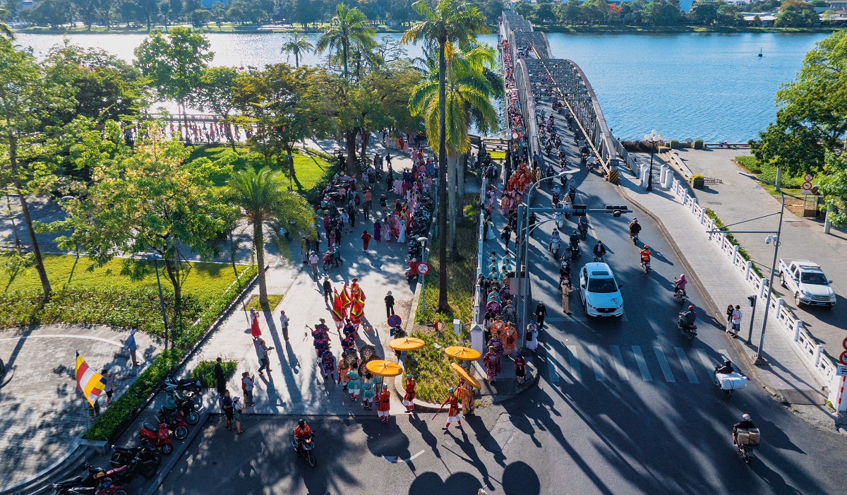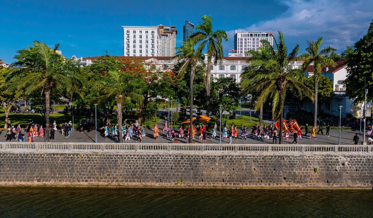 Dọc theo tuyến đi bộ ở trung tâm thành phố Huế với chiều dài khoản 3km, từ Nghênh Lương Đình, men theo bờ sông Hương, qua cầu Trường Tiền, dọc theo đường Nguyễn Đình Chiểu, qua cầu gỗ Lim đến quảng trường Quốc học Huế, người dân và du khách được chiêm ngưỡng đoàn diễu hành được tổ chức quy củ, công phu, mang đậm tinh thần “Việt phong hội tụ - Tinh hoa của văn hoá trang phục Việt truyền thống”. Mỗi người như một đóa hoa rực rỡ trong vườn hoa di sản văn hóa Việt. Mười khối diễu hành với những bản sắc riêng đã lần lượt tiến bước trong âm vang của nhạc lễ, tiếng chén gõ, sanh tiền ngân vang, làm sống dậy cả một không gian văn hóa cổ xưa đầy kiêu hãnh.