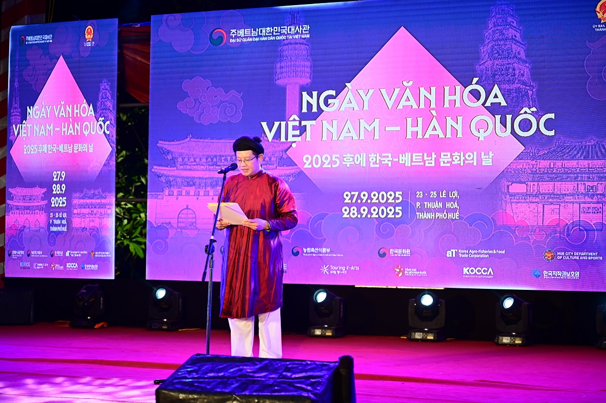 Phát biểu tại buổi lễ, Giám đốc Sở Văn hóa & Thể thao Phan Thanh Hải nhấn mạnh: Hơn 30 năm thiết lập mối quan hệ Việt Nam - Hàn Quốc, từ đó đến nay, dựa trên nền tảng tin cậy chính trị, tương đồng văn hóa và lợi ích chiến lược chung, mối quan hệ ấy đã không ngừng lớn mạnh, đem lại những thành tựu to lớn trong nhiều lĩnh vực. “Ngày Văn hóa Việt Nam - Hàn Quốc 2025” được tổ chức tại Huế không chỉ dừng lại ở việc hợp tác kinh tế thương mại, mà còn là tình bạn bền chặt, là minh chứng cho mối quan hệ tốt đẹp được nuôi dưỡng bằng sự tin cậy, hiểu biết và tôn trọng lẫn nhau.