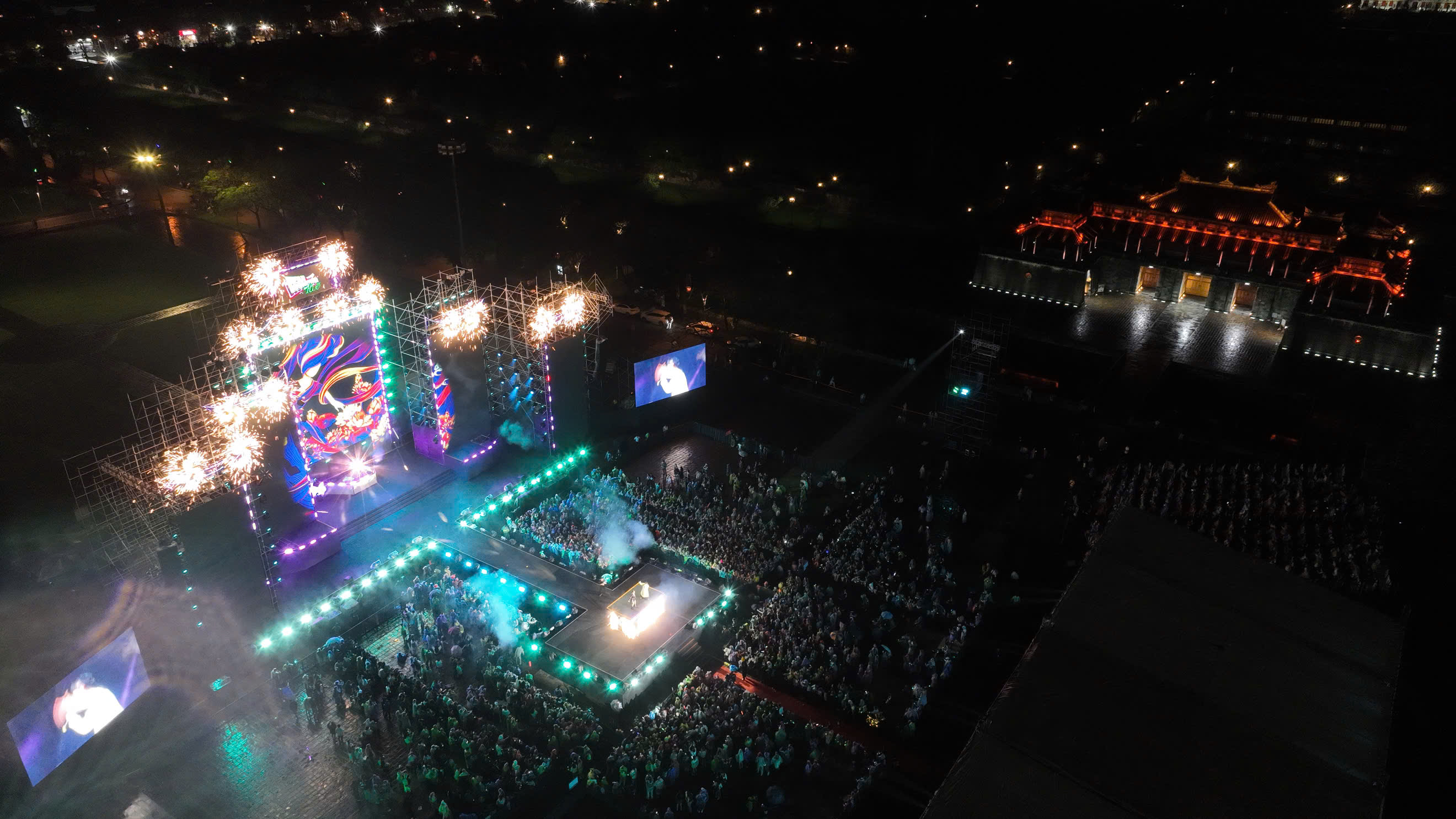 Ngay từ đầu giờ tối, dòng người đổ về khu vực Quảng trường Ngọ Môn mỗi lúc một đông. Thời tiết Huế không mấy thuận lợi khi những cơn mưa ngắt quãng bất chợt trút xuống, nhưng điều đó không làm giảm nhiệt của đêm nhạc. Áo mưa được khoác vội, điện thoại giơ cao ghi lại từng khoảnh khắc, tiếng reo hò vang lên không ngớt mỗi khi các nghệ sĩ xuất hiện, tạo nên bầu không khí sôi động hiếm thấy giữa không gian di sản.