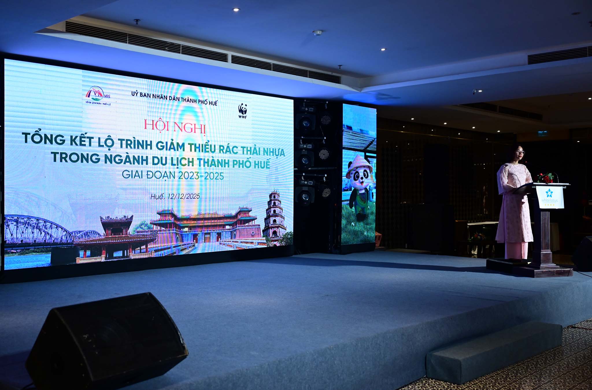 Huế, ngày 12/12/2025 – Hướng đến mục tiêu phát triển du lịch xanh, văn minh và có trách nhiệm, Sở Du lịch TP Huế phối hợp cùng Dự án “Huế - Đô thị giảm nhựa ở miền Trung Việt Nam” (TVA/WWF-Việt Nam) tổ chức Hội nghị “Tổng kết lộ trình giảm thiểu rác thải nhựa trong ngành Du lịch TP Huế giai đoạn 2023–2025”. Sự kiện có sự góp mặt của bà Dương Thị Thu Truyền , Phó Giám đốc Sở Du lịch TP Huế, bà Nguyễn Thị Thùy Trang, Phó Giám đốc Sở Ngoại vụ TP Huế cùng hơn 120 đại biểu đại diện các sở, ngành, chuyên gia môi trường, doanh nghiệp du lịch dịch vụ trên địa bàn.