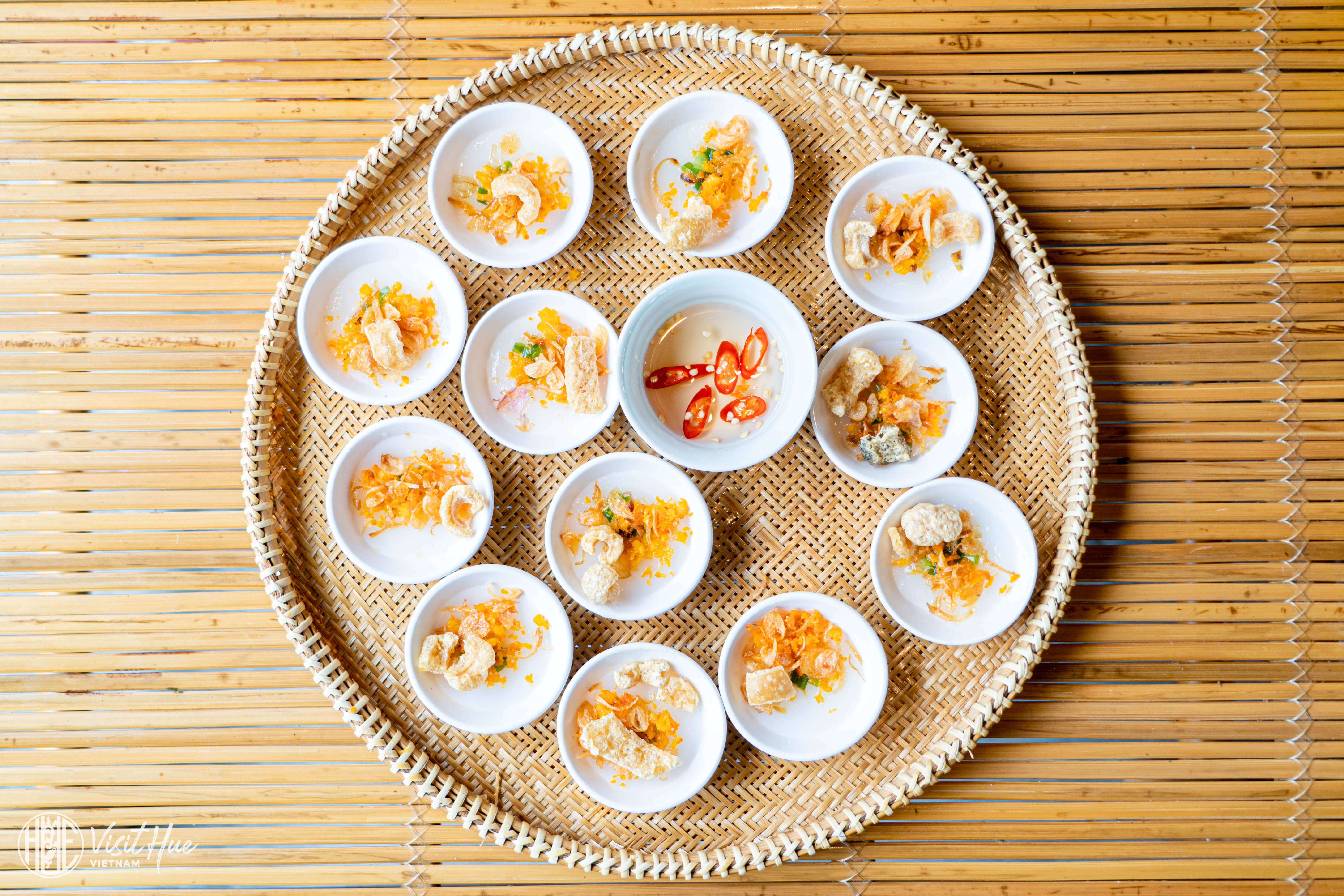 Và cũng tại không gian này, du khách vừa có thể thưởng thức những món ăn mà miệng phải xuýt xoa khen ngon đến mức "ngậm mà nghe", để rồi lưu luyến mãi cái hương vị khó quên ấy qua bàn tay khéo léo của người phụ nữ, món ăn đã được thổi vào cái hồn của Huế vừa được ngắm nhìn những chiếc đèn lồng Trung thu cá hóa rồng, thỏ ngọc, cá chép…mà bây giờ ta chỉ có thể nhìn thấy qua ảnh tư liệu xưa của những mùa Trung thu xưa cũ được treo tại không gian này.