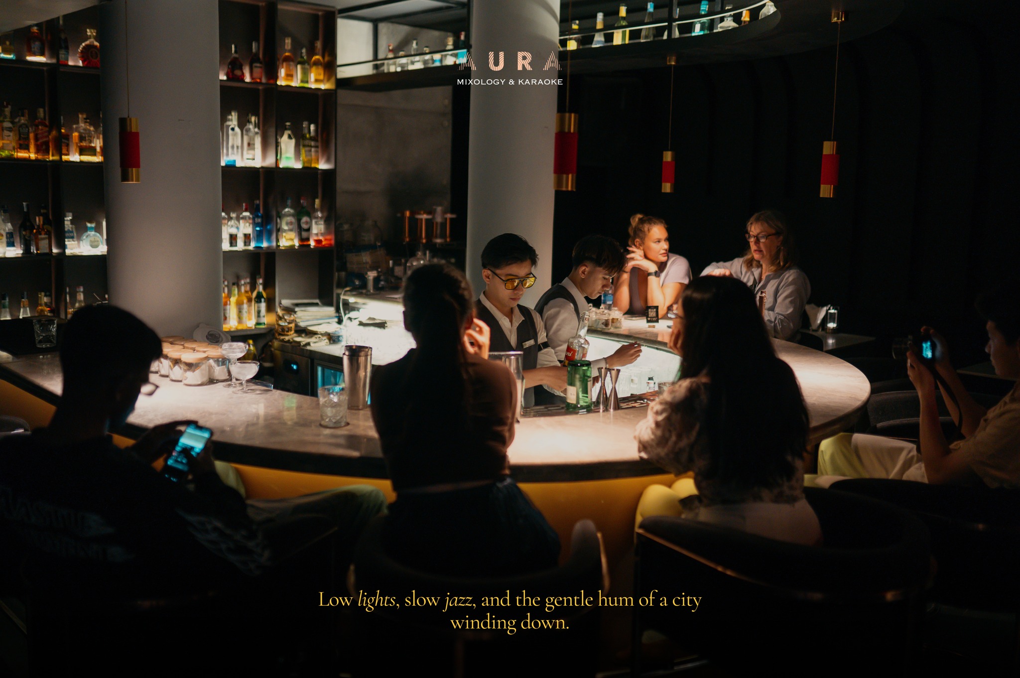 Nằm ngay trên tuyến phố Tây nhộn nhịp bậc nhất thành phố, AURA - Mixology & Karaoke gây ấn tượng với không gian sang trọng, tinh tế và hiện đại. Đây là điểm đến lý tưởng cho những ai yêu thích sự kết hợp giữa âm nhạc, nghệ thuật pha chế và trải nghiệm giải trí đẳng cấp.