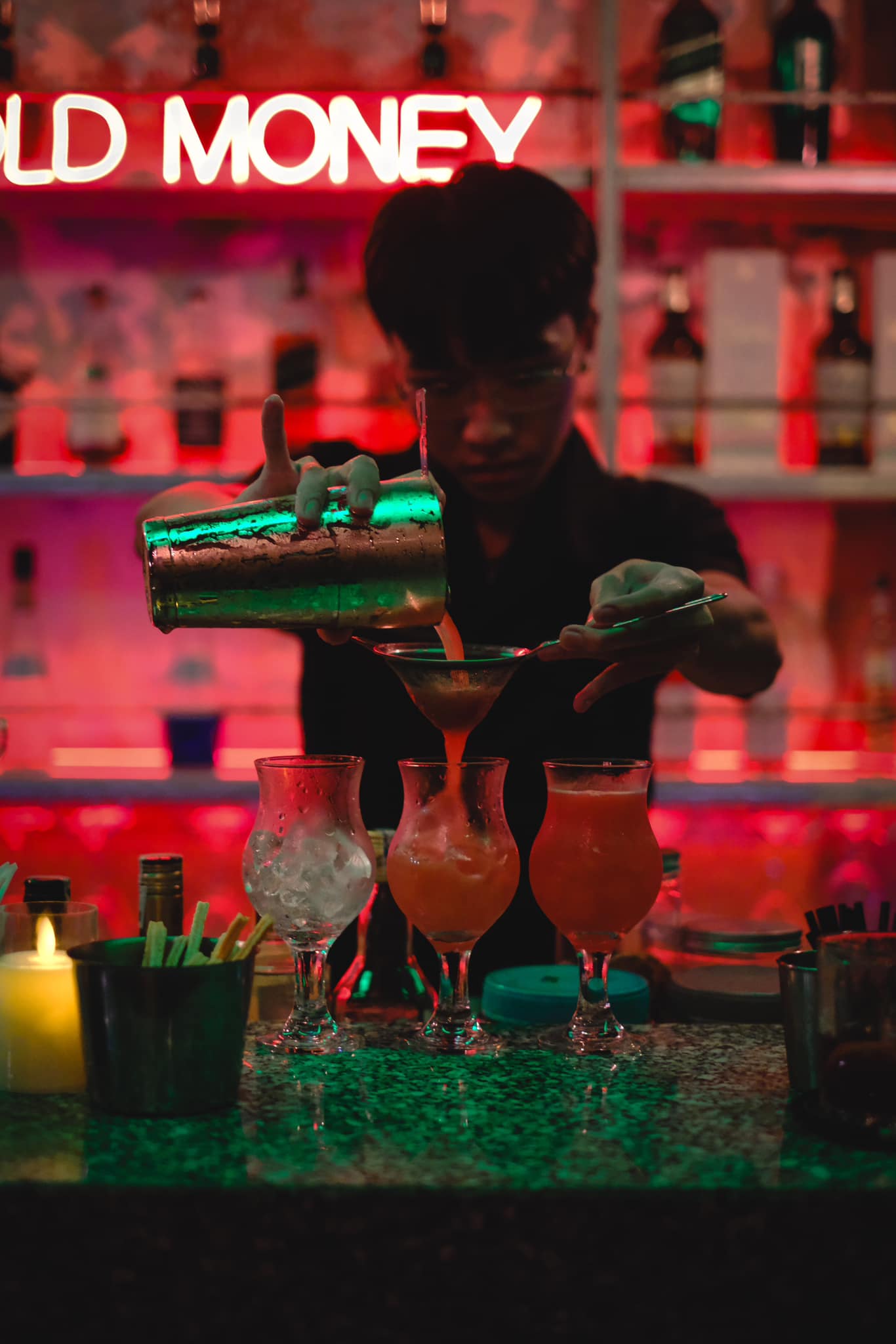 Tọa lạc trong một căn nhà cũ được cải tạo, Old Money Cafe & Cocktails mang đến một không gian vừa mộc mạc vừa hiện đại, với phong cách retro bụi bặm và nổi bật với những dải đèn LED nhiều màu cùng nội thất cá tính. Đây là chốn dừng chân lý tưởng cho những tâm hồn đồng điệu đang tìm kiếm sự tự do, khác biệt và chất riêng trong từng ly rượu.
