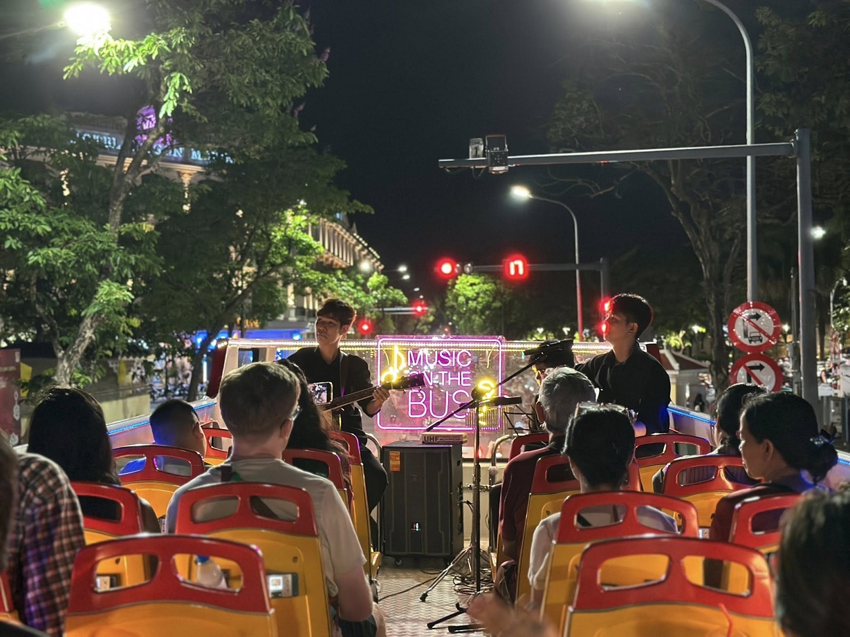 Dịch vụ “Tour ngắm cảnh ban đêm Huế” trên chiếc xe buýt 2 tầng City Tour hiện đang rất được yêu thích, đặc biệt là vào ban đêm khi thành phố rực rỡ ánh đèn. Từ tầng trên của xe, du khách có thể ngắm nhìn toàn cảnh Cố đô từ một góc độ mới lạ - hiện đại mà vẫn thơ mộng.